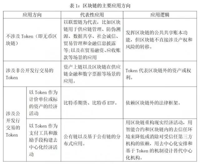 区块链应用一般按照应用场景所属行业进行分类,比如Goldman Sachs(2016)。本文根据区块链应用对Token 的使用情况提出一个新的分类方法,并讨论这些应用涉及的经济学问题。