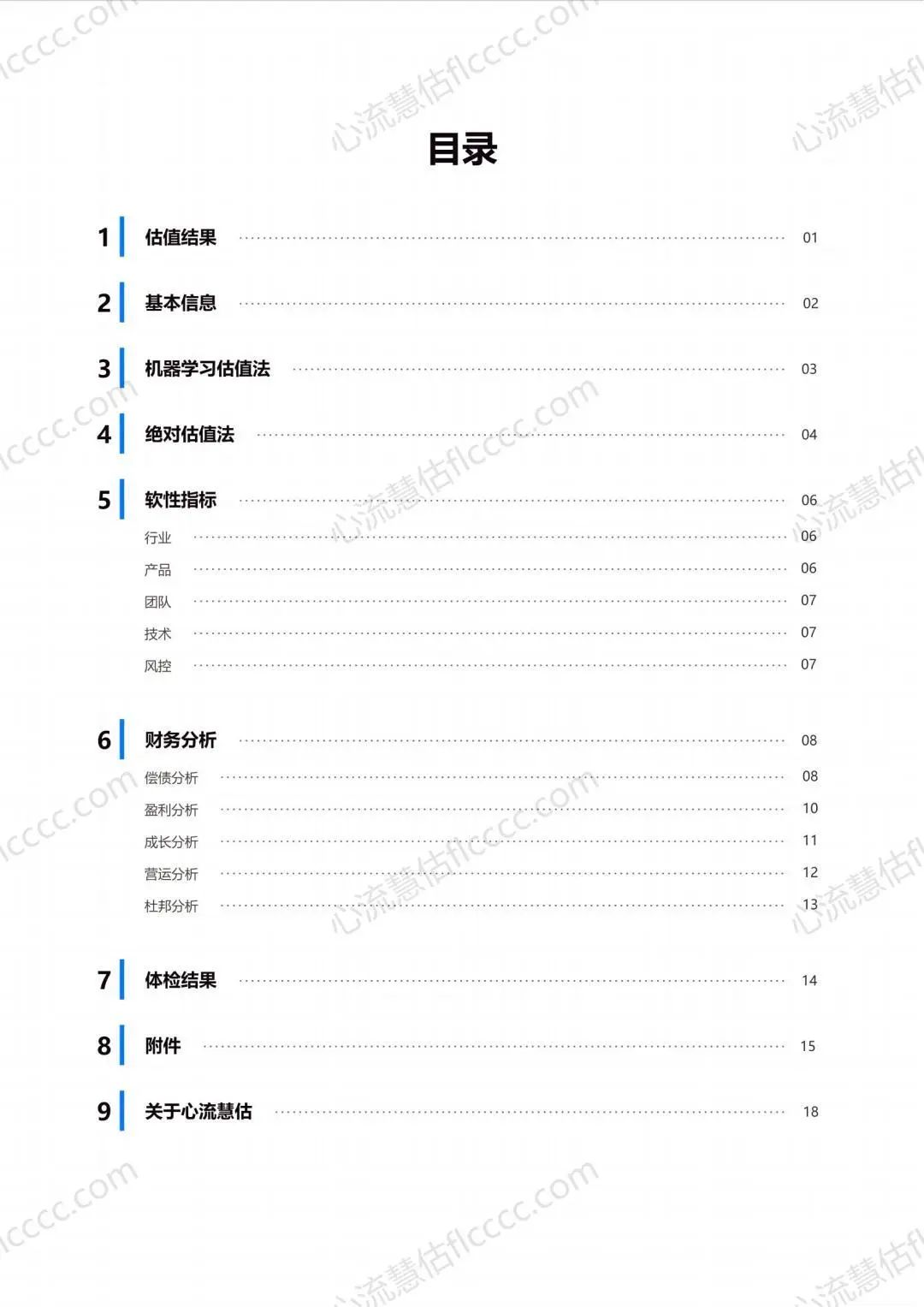 指标体系综合考虑了外部环境及自身因素对其价值的影响,从行业、团队、产品、技术、风控、财务六个维度通过42个具体问题对企业进行综合评价。